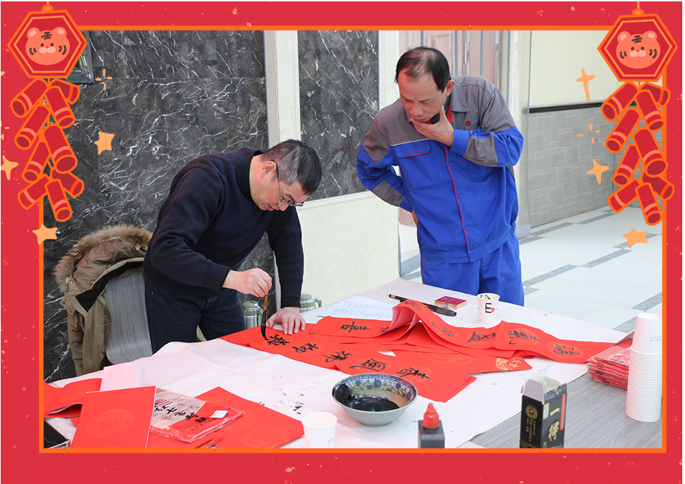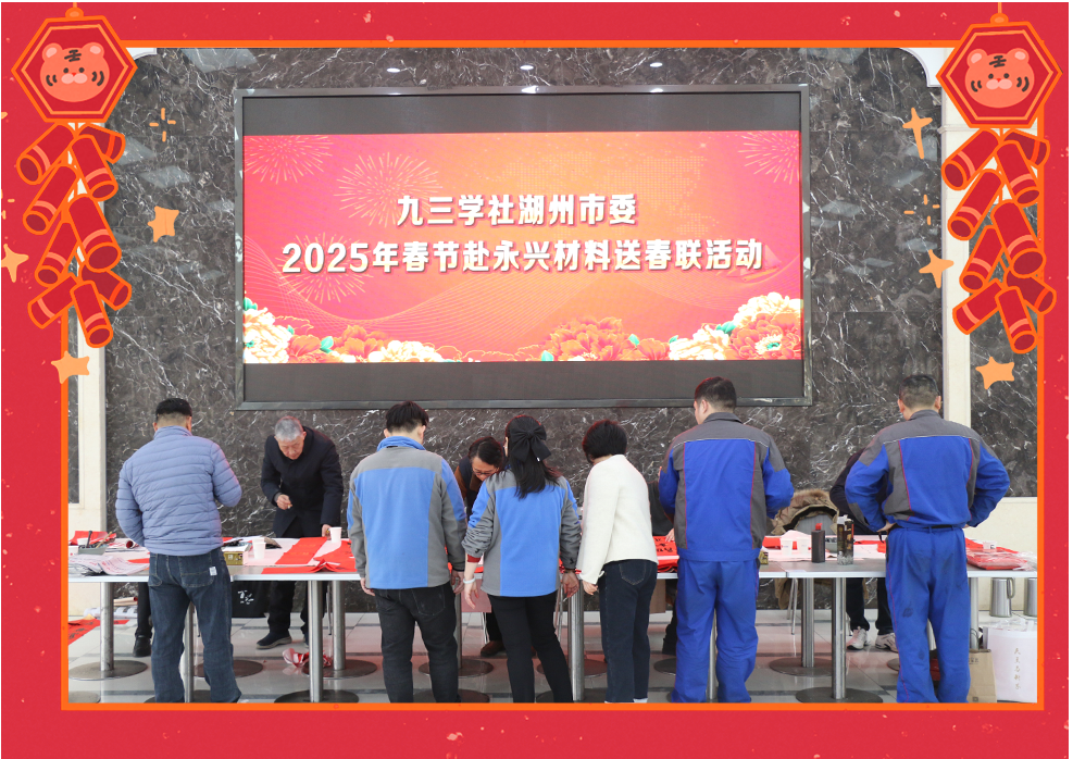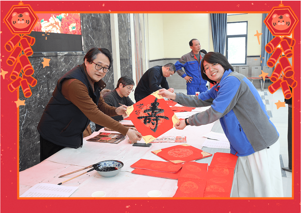 靈蛇迎歲,新元肇始。1月23日上午,九三學(xué)社湖州市委的書法家們來(lái)到永興,為公司員工送上新春的祝福。他們筆力遒勁,揮毫潑墨,筆觸間蘊(yùn)含著深厚的文化底蘊(yùn)與新春的吉祥氣息。現(xiàn)場(chǎng)氣氛活躍,書法家們根據(jù)員工的個(gè)性需求精心創(chuàng)作,員工們紛紛排隊(duì)領(lǐng)取,一幅幅獨(dú)具匠心的春聯(lián)帶著濃濃的溫情和祝福。隨著書法作品一一完成,墨香撲鼻,員工們感受到新春的喜悅和九三學(xué)社的深情厚意。這一場(chǎng)書法贈(zèng)春的活動(dòng),不僅讓大家感受到傳統(tǒng)文化的魅力,也增添了新春佳節(jié)的喜慶氛圍。